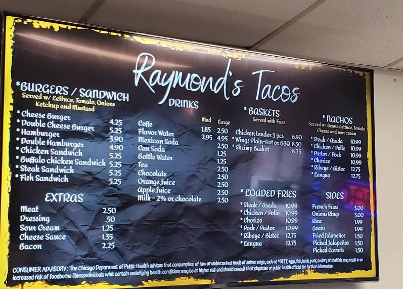 Welcome to Raymond's Tacos No 1 Restaurant, where we proudly serve the best Mexican tacos, hamburgers, and more in the heart of Chicago. Our friendly, family-oriented atmosphere ensures a fantastic dining experience whether you're here for a quick bite or a full meal. Known for our authentic, mouth-watering tacos and juicy hamburgers, we provide delicious, freshly prepared food at affordable prices. Come visit us and experience the great taste of Raymond's Tacos No 1, where every meal is served with love!