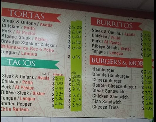 Very patient gentleman!!! They made my order ready pretty quickly and even gave recommendations I had the cheese burger and taco de al pastor (slow cooked pork that's covered in spices) I typically only order these from places that smell fantastic, I was just walking in the area and stopped by. I ate the taco in my car because I was starving worth it lol